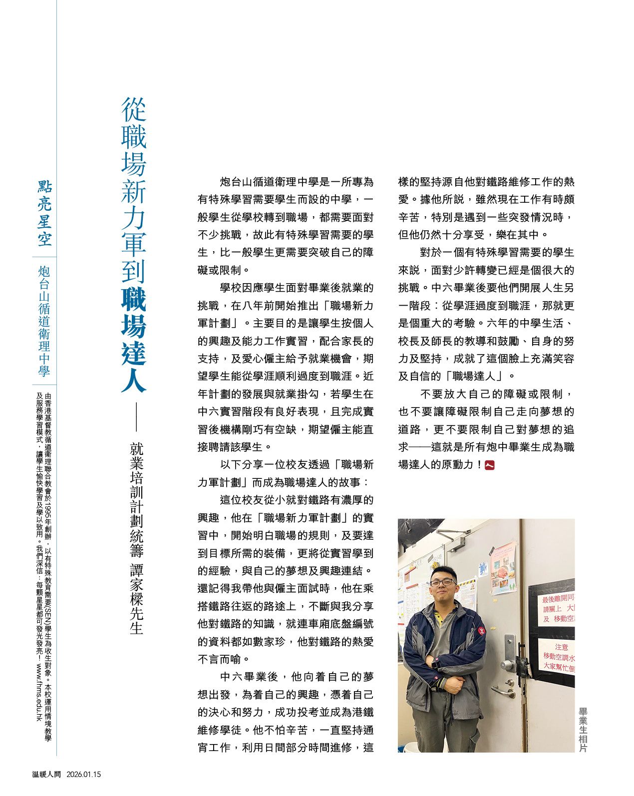 如果你是SEN(有特殊教育需要)孩子的父母,相信最大的心願就是子女能夠找到一份工作,自力更生。更大的期望,或許是希望他們能在工作中找到滿足感與熱情。然而,這個心願並不容易實現。幸好,香港有一間獨特的中學——炮台山循道衛理中學(下稱:炮中),這所學校100%收取SEN學生,透過度身設計的課程與就業配對,幫助學生畢業 後不僅能養活自己,甚至能給家用支援家庭。這不僅改變了一個孩子的命運,更是改變了一個家庭的未來。